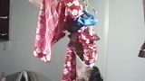 花模様の赤い長襦袢を着た女(春原悠理)を、びしびしと後ろ手に縛りあげていく濡木痴夢男の手練の早業。いきなり高く吊り上げると、うつぶせ吊りから逆さ吊りへと強烈な残酷美の変化を見せて縄は躍動します。次は不気味な地下室の中に、セーラー服を着せられ、哀れに悶えてうごめく悠里のフェティッシュなポーズです。スカートがまくられると、黒いパンスト、透けて見える白いパンティの悩ましさ。と、見る間に華麗な逆さ吊りへと展開します。パンストが下ろされ、パンティがずり下げられると、かわいい尻をよじって羞恥に悶える悠里。その尻へ浴びせられる鞭。全国の悠里ファンには、絶対見逃せない刺激的なシーンです。つぎは黒いレースの下着一枚の悠里の両腕を、背中で一直線に揃えた、凄い直線縛りをお目にかけます。緊美研の例会において緊縛された春原悠里の、3種類の場面はそれぞれに美しく残酷で、悠里ファンを熱狂させることでしょう。とくに直線縛りの縄の掛け方の凄さは、ゾッとするくらいに強烈で残酷味の強いものです。